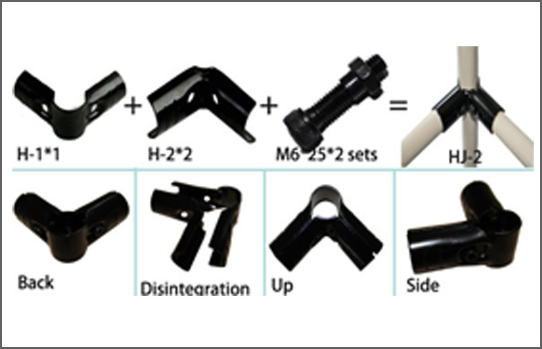 Because metal pipe joints are fixed by M6*25 bolt and nut, only need a M6 spanner to tighten and loosen when assembly and disassembly pipe rack products.